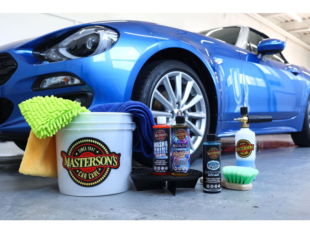Do dvou věder si připrav čistou vodu. Do prvního nadávkuj šampon Masterson’s Wash & Shine, druhý slouží k vymývání rukavice. Mycí rukavici Microfiber Green Chenille Wash Mitt namoč do šamponové vody, jemně a pečlivě umývej. Po malém úseku rukavici vymyj ve druhém kýblu, namoč do šamponu a pokračuj v mytí. Vymývej rukavici co nejčastěji. Je vhodné mít zvláštní rukavici na špinavější části – kola, prahy, podběhy, podvozek.